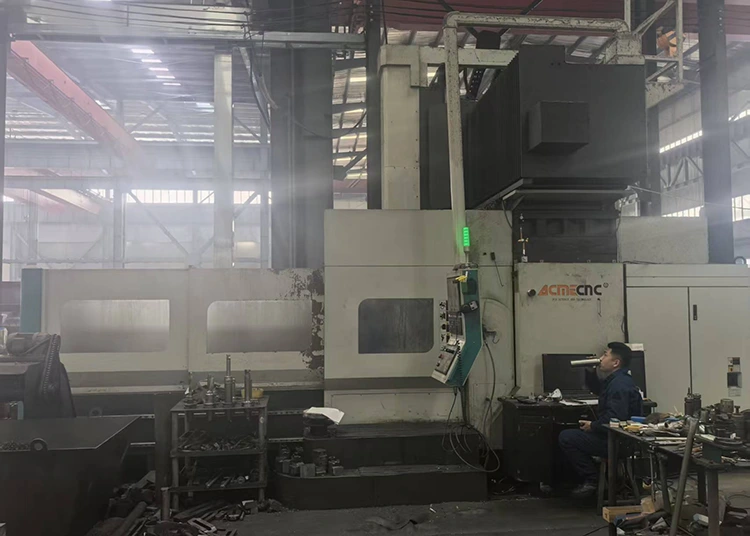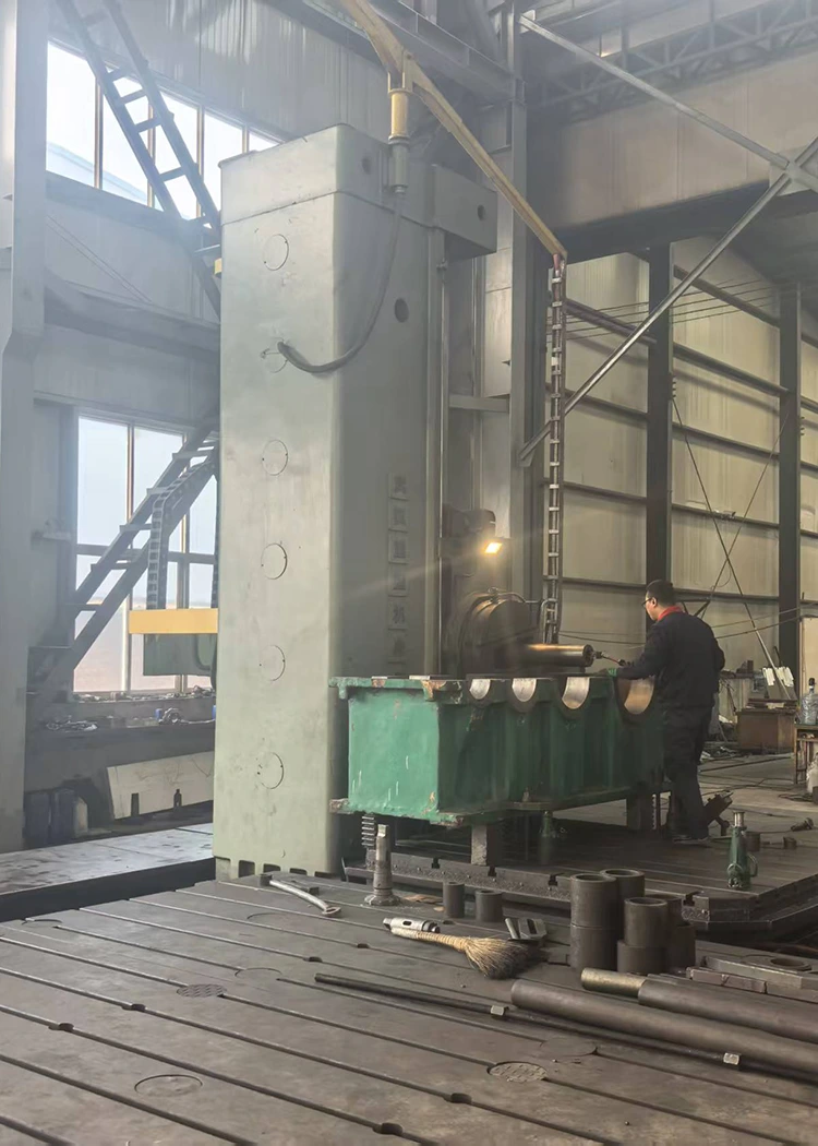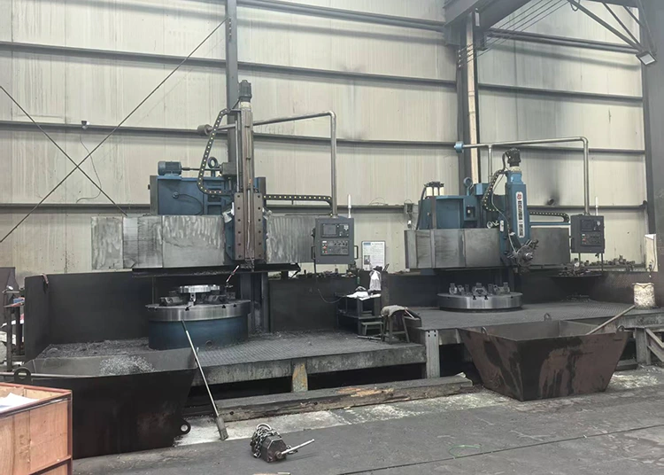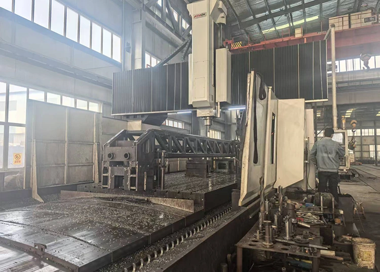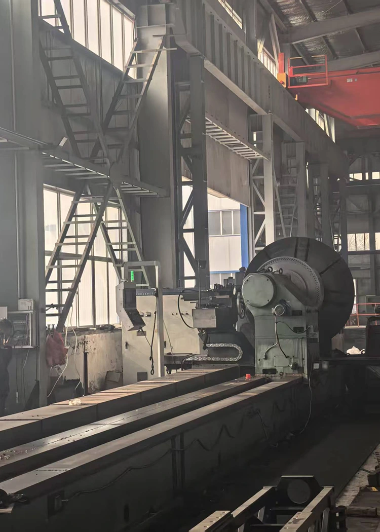 En cuanto a equipos de mecanizado CNC, contamos con centros de mecanizado de pórtico CNC de múltiples marcas. Por ejemplo, la marca Taiwan Taizheng incluye una unidad con dimensiones de 8,5 m*4,6 m*2 m y una capacidad de carga de 45 toneladas, una unidad con dimensiones de 6 m*3 m*1,5 m y una capacidad de carga de 25 toneladas, y una unidad con dimensiones de 3 m*2 m*1,05 m y una capacidad de carga de 15 toneladas. La marca Qingdao Yongji incluye una unidad con dimensiones de 6m*3,2m*1,7m y una capacidad de carga de 25 toneladas, y una unidad con dimensiones de 12m*8m*4m y una capacidad de carga de 100 toneladas. También hay dos centros de mecanizado CNC de la marca Dalian Machine Tool, con unas dimensiones de 850mm*500mm*400mm y una capacidad de carga de 25 toneladas. Además, hay una máquina fresadora y taladradora de piso 160 de la marca Wuzhong, con dimensiones de 6 m*2,8 m*1,25 m y una capacidad de carga de 100 toneladas. También contamos con una gama completa de tornos verticales y horizontales CNC. Por ejemplo, hay un modelo de torno CNC vertical de la marca Qiqihar, de 2,5 m x 1,6 m, con una capacidad de carga de 32 toneladas; un torno CNC horizontal de Anyang Machine Tool, 3000 mm * 800 mm, capacidad de carga de 6 toneladas; tres tornos CNC horizontales de Dalian Machine Tool, 1500 mm x 400 mm, capacidad de carga de 3 toneladas; y un torno CNC horizontal de Dalian Heavy Industry, 17 m*2,5 m, capacidad de carga de 100 toneladas. Para tornos horizontales convencionales, tenemos una unidad de Tianjin Second Machine Tool Factory con especificaciones de 11 m*1 my una capacidad de carga de 15 toneladas; varias unidades de Anyang Machine Tool, incluidas 8 m*1 m (15 toneladas), 3 m*1,25 m (10 toneladas) y 1,5 m*1 m (10 toneladas); y tres unidades de Shenyang Machine Tool con dimensiones de 3m*∅0,8m y una capacidad de carga de 5 toneladas. También contamos con fresadoras de engranajes y máquinas ranuradoras. La máquina talladora de engranajes es de Chongqing Machine Tool Factory, con 2 my 20 módulos, una unidad; La máquina ranuradora es de Fushun Machine Tool Factory, 500 mm, una unidad. Hay una fresadora de pórtico convencional de la Primera Fábrica de Máquinas Herramienta de Beijing, 3m*1m*1,2m, 20 toneladas; y una máquina perforadora y fresadora con pantalla digital 110 de Kunming Machine Tool Factory, 1,5 m*1 m*1 m, 5 toneladas. Para rectificadoras y perforadoras, tenemos dos amoladoras cilíndricas externas de Shanghai Machine Tool Factory, 1,5 m*0,35 m; y perforadoras de Zhongjie Friendship Factory, una unidad de 80 mm, dos unidades de 50 mm. En términos de equipos de corte y prensado, contamos con una máquina de corte por plasma con llama de la marca Jiangsu, 24 m * 4 m, una unidad; Las prensas de estampado incluyen una unidad de 300 toneladas de Wuxi Machine Tool Factory y una unidad de 100 toneladas de Tianjin Machine Tool Factory. Hay dos máquinas laminadoras de placas con especificaciones de 2500 mm*20 mm. El equipo de puente grúa también es suficiente, e incluye una unidad de 100 toneladas, una unidad de 50 toneladas, dos unidades de 32 toneladas, una unidad de 20 toneladas, una unidad de 16 toneladas y siete unidades de 10 toneladas.
